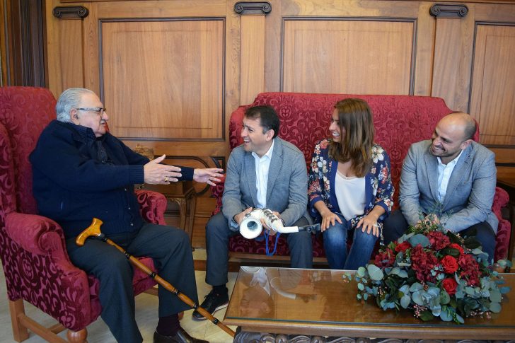 El histórico componente de la Afilarmónica Ni Fú-Ni Fá entregó al alcalde el instrumento musical, junto a un cuadro dibujado por su sobrino.