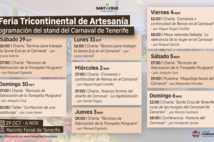 El Carnaval de Santa Cruz, a través de la Casa del Carnaval, estará presente en la sexta edición de la Feria Tricontinental de Artesanía que tendrá lugar del 29 de octubre al 6 de noviembre en el Recinto Ferial de la capital tinerfeña. Así, esta edición de la Feria Tricontinental de Artesanía se centrará en…