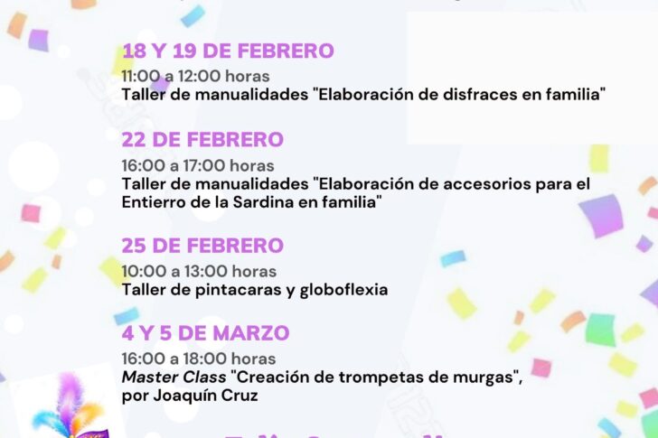 Las actividades, del 18 de febrero al 5 de marzo y están pensadas para un público familiar, centrándose en la elaboración de accesorios de Carnaval. Calendario completo en este enlace La Casa del Carnaval ha abierto las inscripciones para los talleres organizados con motivo del Carnaval de Santa Cruz, que comenzarán el próximo sábado, 18…
